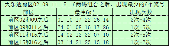 前区两码02和09开出之后,表现最冷的6个号码为:01、10、17、22、26、14;