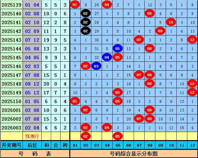 后区号码分析:在第004期历史同期开奖中奖,奖号09出现7次,奖号06 07出现5次,奖号04 08出现4次,奖号03 10出现3次,奖号01 02 05出现2次,奖号12出现1次,奖号11没有出现。本期后区五码参考02、03、04、05、11。