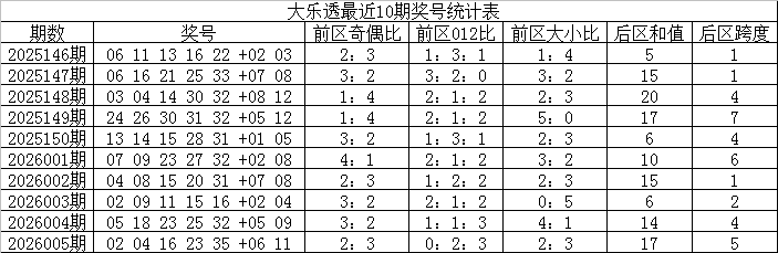 大乐透第2026005期奖号为:02 04 16 23 35+06 11。当期前区奖号012路比为0:2:3,冷热比为3:2,包含1个重号:23,没有开出连码,后区开出一奇一偶、一大一小组合。