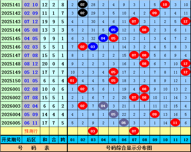 三少第2026006期体彩大乐透后区尾数分析:上期后区开出奖号06和11,奖号尾数为0路和1路,本期后区排除2路尾数号码,五码参考03、04、07、09、11。