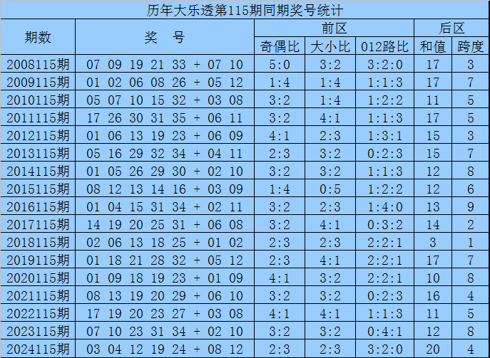 袁军师体彩大乐透第2025115期历史同期奖号分析: