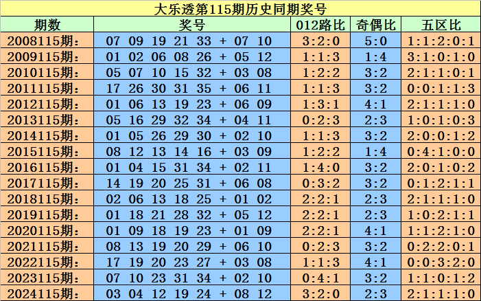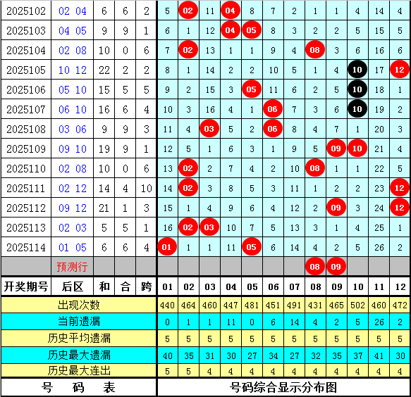 上期开奖:大乐透第2025114期开奖:03、08、09、12、16+01、05,前区012路比为3:1:1,奇偶比为2:3,五区比为1:3:1:0:0,大小比为0:5。