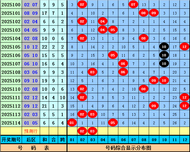 后区第二位分析分析:在第115期历史同期开奖中,该位号码升重降次数比为8:0:8,出现范围在02-12区间,最近5年后区第二位分析号码升重降次数比为3:0:2,出现范围在08-12,对比最近几年同期号码,今年第115期看好后区第二位分析号码逐渐下降,关注号码03。