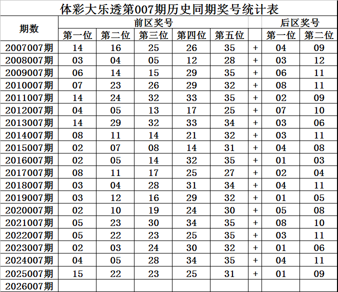 王守礼体彩大乐透第2026007期历史同期定位升重降号码分析: