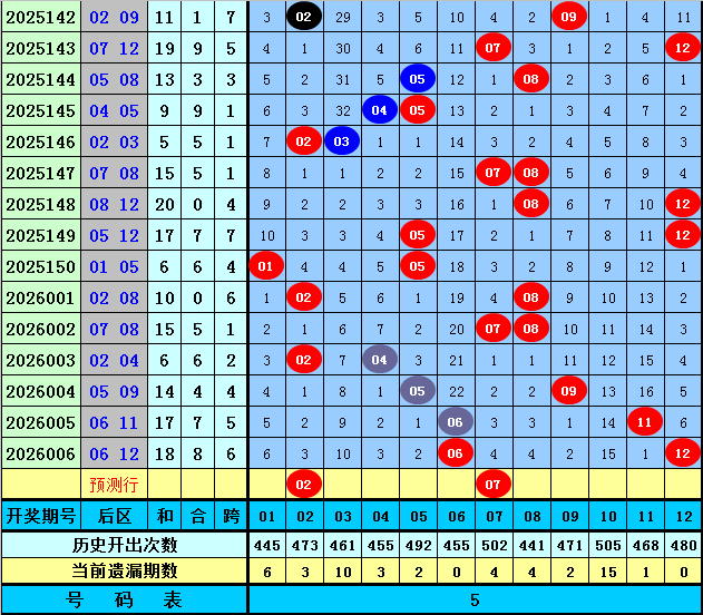 大乐透第2026006期开奖,前区:05、12、18、23、35;后区:06、12。其中前区012路比为2:0:3,奇偶比为3:2,和值为93,跨度为30,后区开出0路+0路号码。