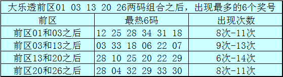 前区两码20和26和之后表现最热的6个号码为:28、04、32、29、33、30;