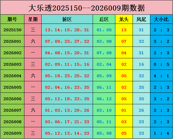 大乐透第2026009期奖号为:前区05 12 13 14 33,后区05 08;奇偶比3:2,大小比:1:4.