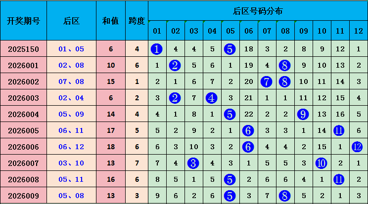 上期后区开出05 08