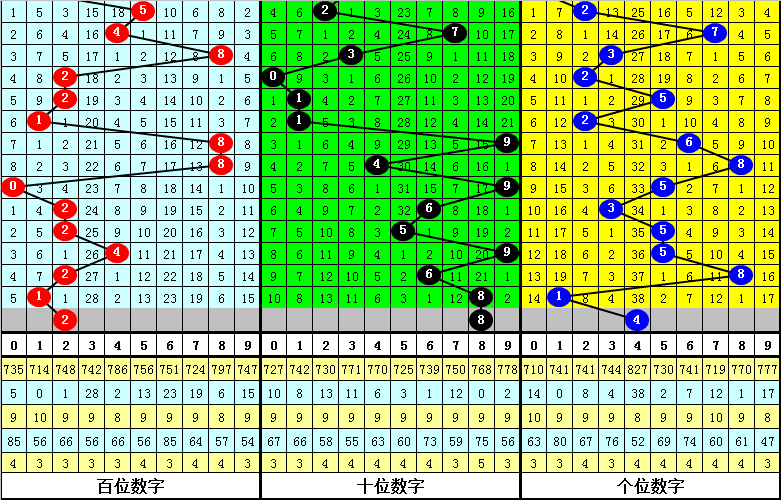 百位上期开出号码1,为奇数,偶数号近期出现次数较多,上期走冷之后,本期看好偶数号再次出现,关注2。
