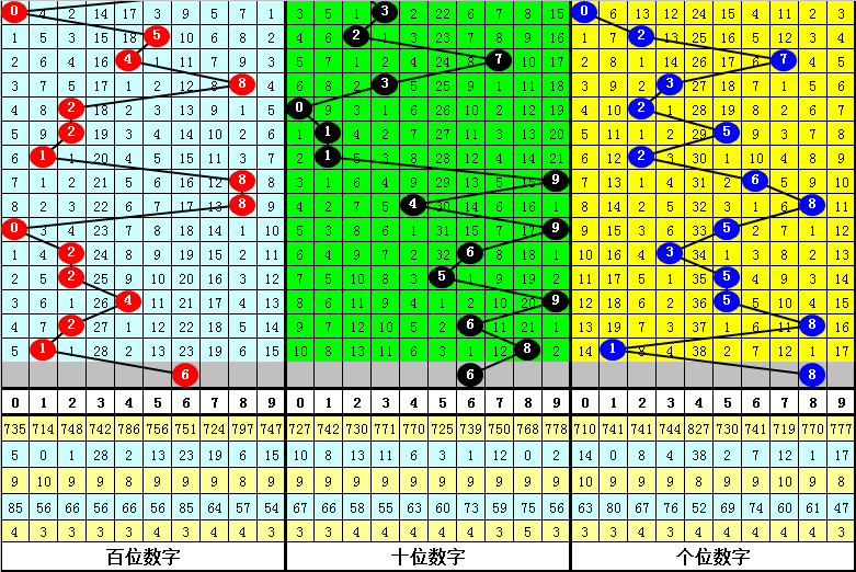 百位:当前遗漏最大的号码为3,遗漏28期,历史上该号最大遗漏为56期,本期百位继续排除号码3。
