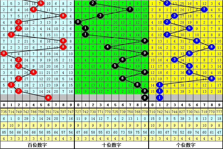 二、在最近22期开奖中,奖号:2、5、8、9,开出期数最多,本期注意这四码中落号,关注号码9;遗漏期数最多的三码奖号为:7、0、3,当期开奖一般不会全部出现冷码。