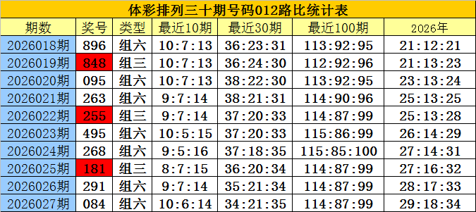 开奖回顾:排列三第2026027期奖号为:084,号码012路比为1:1:1。