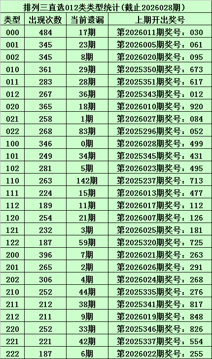 上期回顾:体彩排列三第2026028期开出奖号:499,其012路比为2:1:0,奖号012路类型为:100。