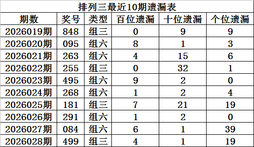 上期回顾:排列三第2026028期奖号:499,组三,直选遗漏总值为24期。