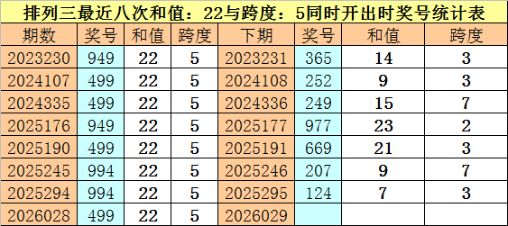 开奖回顾:体彩排列三第2026028期奖号为:499。和值为:22,跨度为:5。