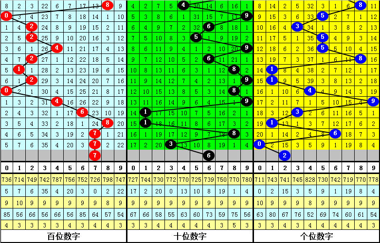 上期第一位开出奖号:7,重复开出,表现较热,最近10期该位热码表现非常低迷,本期适当关注该位热码逐渐回补,参考号码7。