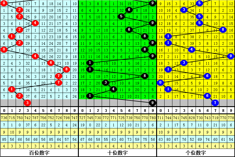 两码合开出频次分别为:0、1出现12个,3出现9个,2出现8个,9出现6个,7出现5个,5、6、8出现4个,4出现2个,其中历史同期两码合012路比开出31:19:16,大小比开出23:43,奇偶比开出36:30;