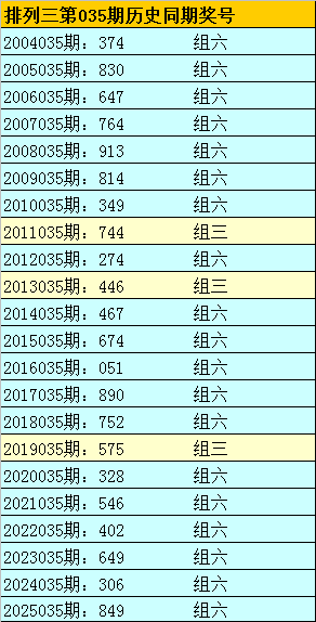 则,排列三第2026011期奖号:030,与排列三第2026035期奖号可能有相同的号码。或者排列三第2026035期奖号大小比、奇偶比和012路比可能与第2026011期奖号形态:小小小、偶奇偶和000路相似。