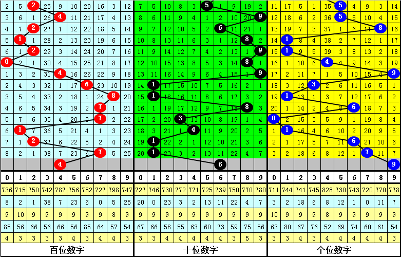个位推荐:质合号码近期开出比例基本相当,上期开出质号之后,本期注意合号出现;另外,该位0、1路号码最近走势较热,本期关注号码9。