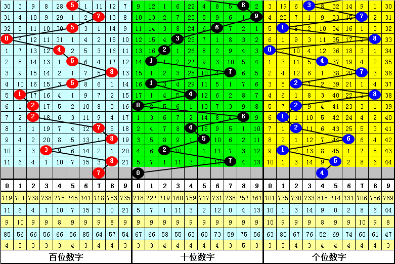 中号球:上期奖号为7,开出大号、奇号,该位前10次开出大号、奇号的现象时其奖号分别为:754、758、994、178、558、190、693、797、877、856,其中中号球012路比为4:2:4。