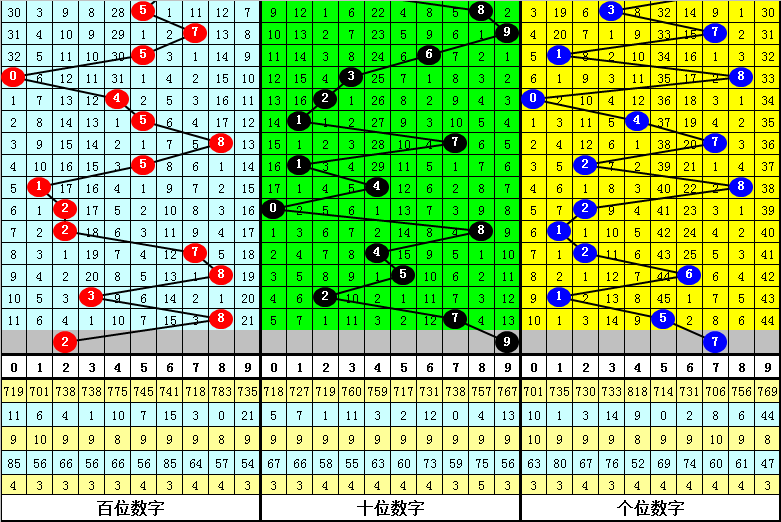百十位差推荐:前三期百十位差分别开出3-1-1,本期预计百十位差走大,注意7出现。