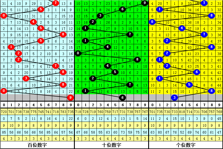 首号球:上期奖号为0,开出小 号、偶号,该位前10次开出小 号、偶号的现象时其奖号分别为:453、258、282、220、286、207、038、420、202、281,其中首号球012路比为1:2:7。