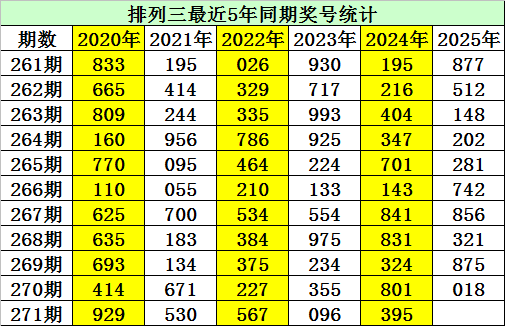 金心排列三第2025271期推荐: