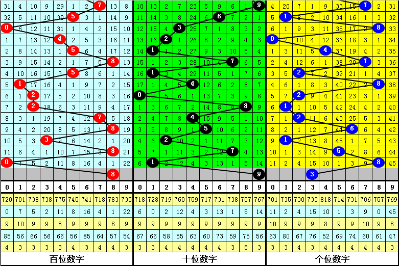 012路分析:最近10周星期日奖号012路总比例为10:10:10,012路号码轮空期数比为2:3:3,上周星期日奖号012路比为1:0:2,本周星期日注意1路号码走冷,看好0路号码热出,参考012路比2:0:1。
