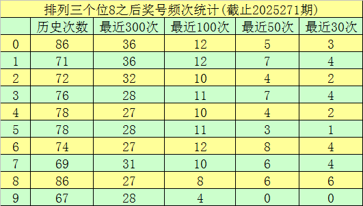上期回顾:排列三第2025271期开出奖号898,奖号类型为:组三、大大大、偶奇偶,和值开出25。