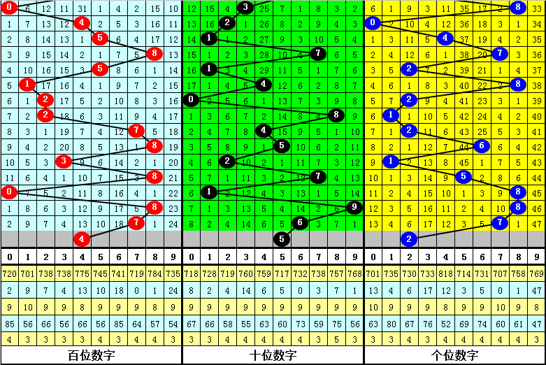 从以上统计可以看出,百十位两码合差3与1同时出现之后其下期两码合差表现最热的4个分别为:0124,本期百十位两码合差可以参考这四码中的数据。