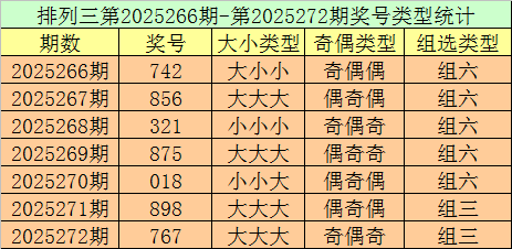 排列三第2025272期回顾:奖号767,奇偶比2:1,大小比3:0,和值20,类型:组三。
