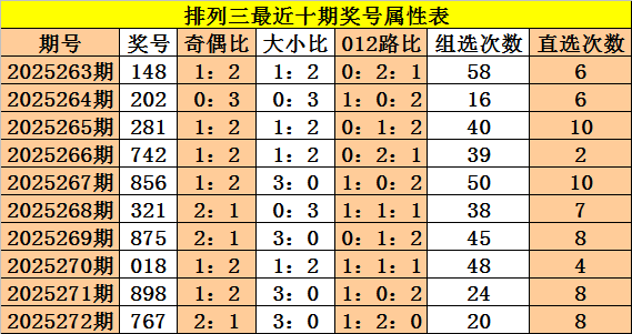 上期回顾:体彩排列三第2025272期奖号:767,奇偶比2:1,大小比3:0,012比1:2:0。