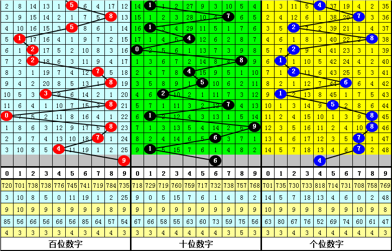 百位目前最冷号码为:9,当前遗漏25期,该号码历史最大遗漏为54期,本期防百位9解冻;