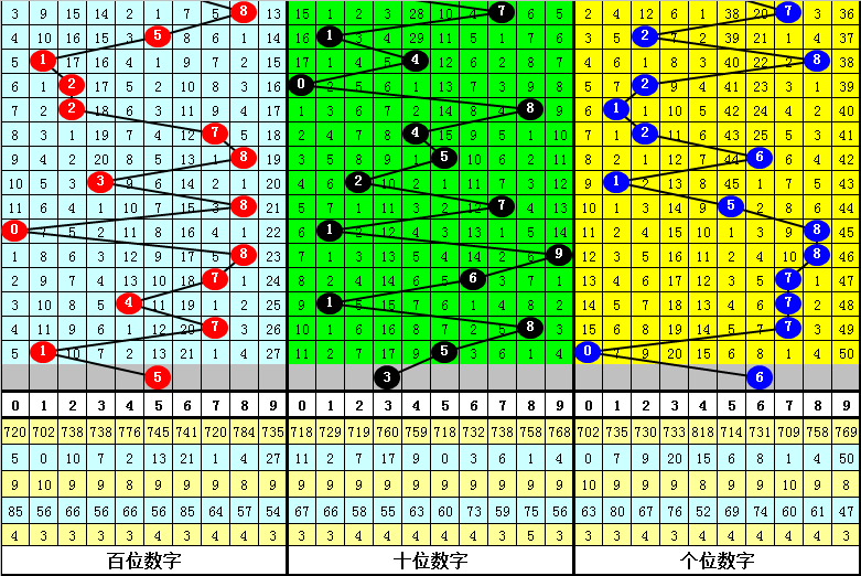 在最近10期开奖中,跨度振幅分别出现:5-2-1-1-5-7-0-5-5-4,有下降迹象,跨度波动范围较广,本期看好跨度大幅波动,注意跨度3。