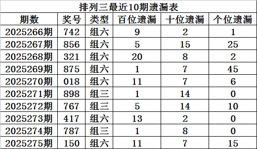 上期回顾:排列三第2025275期奖号:150,组六,直选遗漏总值为33期。