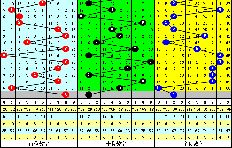 百位:下期百位2路号码仅出现了2次,开出比例相当低,本期应重点关注2路号码回补,参考号码8。
