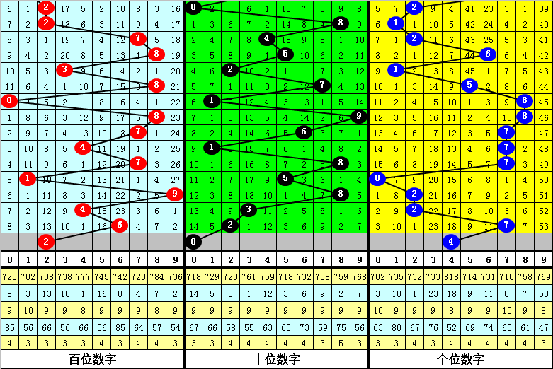 本期百位重点关注偶数号码,参考号码2。
