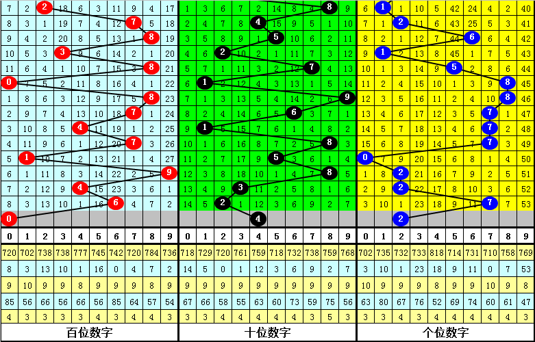 百位:下期开奖百位以1路和2路号码为主,0路号码没有出现,表现非常冷,本期注意0路号码回补,参考号码0。