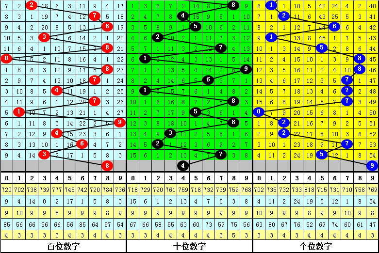 百位:上期开出3,奇数,偶号最近两周明显活跃,上期轮空,本期看好8。