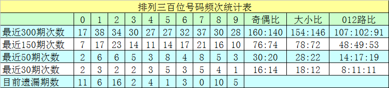 百位号码:前50期走势活跃的号码为:5、7开出8个,1、2开出6个;走势最冷的号码为:0开出2个,4、9开出3个。奖号012路比开出14:17:19,奇偶比开出30:20。本期百位杀排除:1、4,注意号码2、6、9,胆码参考2。