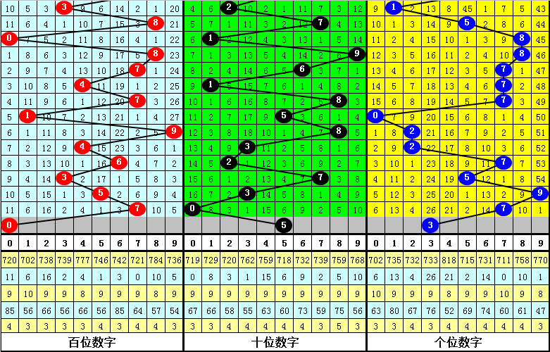 0路号码上期开出1个,近10期共出现9个走势相对较冷,其中0开出2个、3开出3个、6开出2个、9开出2个,本期应注意0路号码回补,参考号码0、3。
