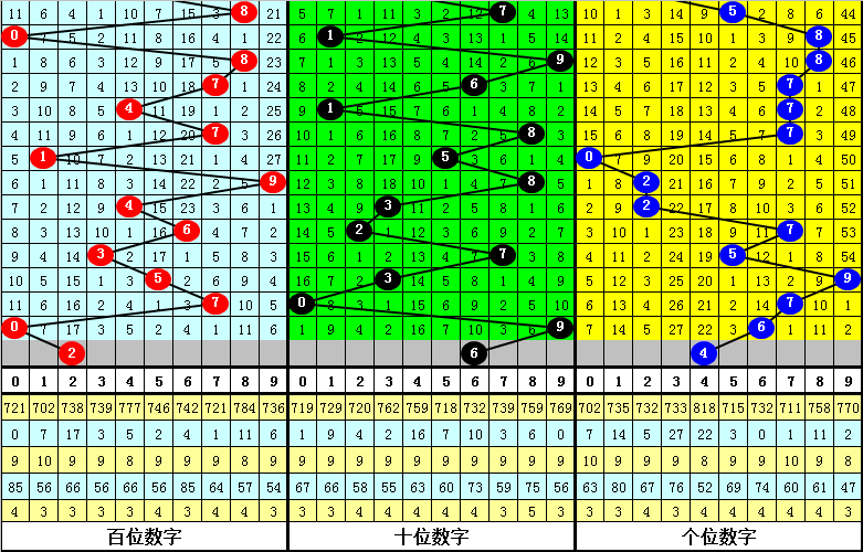 排列三第2025280期-第2025282期分别开出奖号:539、707、096。