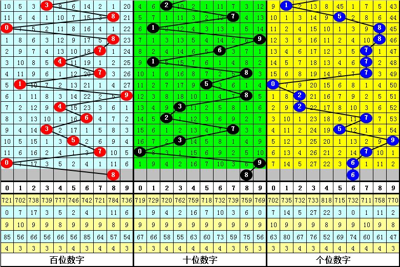 百位:上期开出0,偶数,偶号最近两周开出较少,连出1期,本期再次开出,参考8。