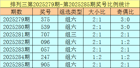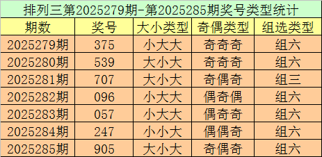 排列三第2025285期回顾:奖号905,奇偶比2:1,大小比2:1,和值14,类型:组六。