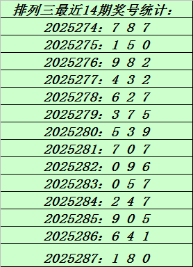上期回顾:排列三第2025287期奖号:180。和值9,跨度8。