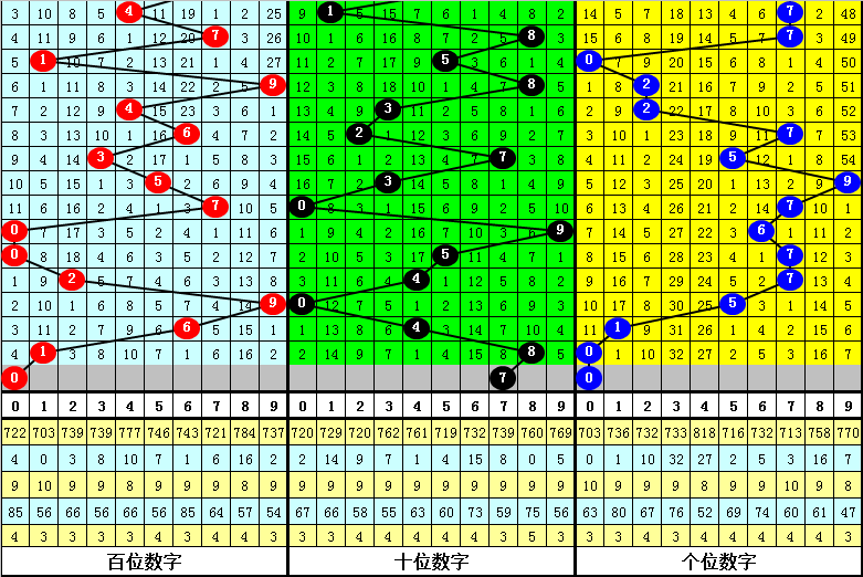 百位:上期开出1,近10期012路比为6:2:2,其中1路号遗漏5期再出,本期放弃1路号,关注0路号,看好0。