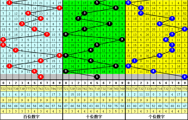 上期第二位奖号为:0,间隔2期之后开出,表现相对热,前10期该位热码开出次数较少,本期注意该位热码逐渐回暖,关注号码5。