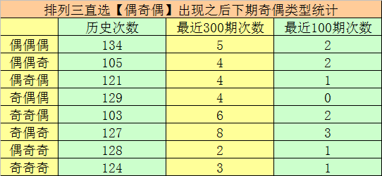 排列三第2025296期奖号为052,直选奇偶分布为:偶奇偶,该奇偶分布历史上共出现了972次,前100期出现13次。