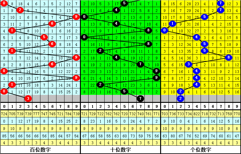 其中,号码0-9开出次数分别为:号码0开出5次、1开出2次、2开出2次、3开出2次、4开出4次、5开出4次、6开出1次、7开出4次、8开出3次、9开出3次。