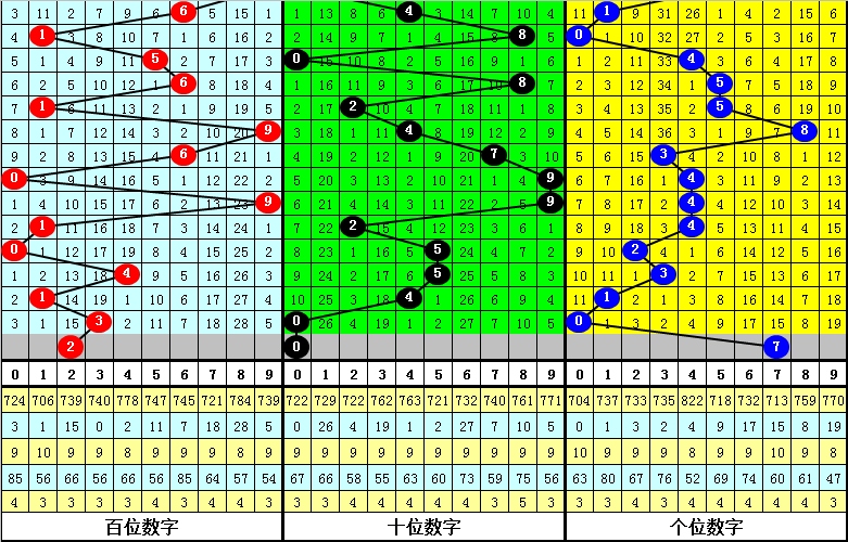 上期第二位奖号为:0,间隔10期之后开出,走势较温,前10期该位热码开出次数较少,本期注意该位热码逐渐回暖,关注号码0。